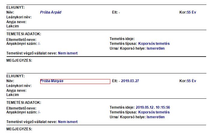 Ebben a menüpontban készítheti el a Sírboltkönyvet, mely megmutatja, hogy egy-egy sírban konkrétan kik vannak