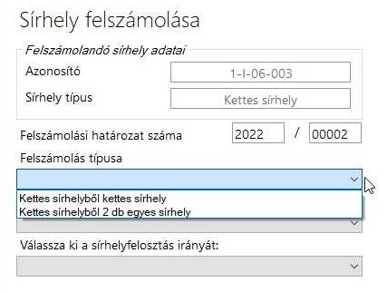 Figyelem a felszámoláskor a sírokban nyugvó elhunytak automatikusan átkerülnek a felszámolásra került sír "Korábbi elhunytak" menüjébe.