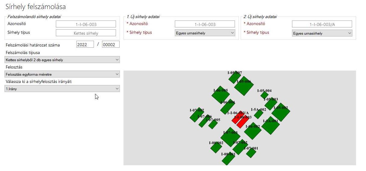 Kiválasztás után a program automatikusan megadja a a sírok azonosító adatait.