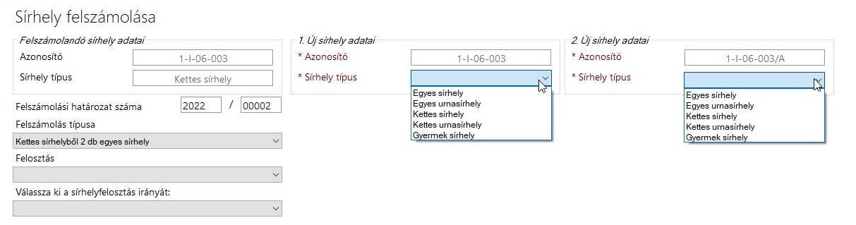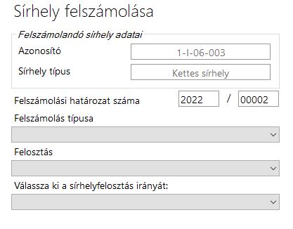 Figyelem a felszámoláskor a sírokban nyugvó elhunytak automatikusan átkerülnek a felszámolásra került sír "Korábbi elhunytak" menüjébe.