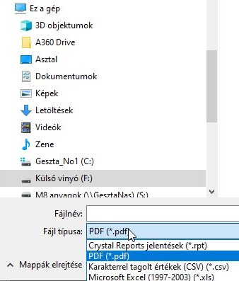 Majd a Fájl típusánál válassza a PDF típust